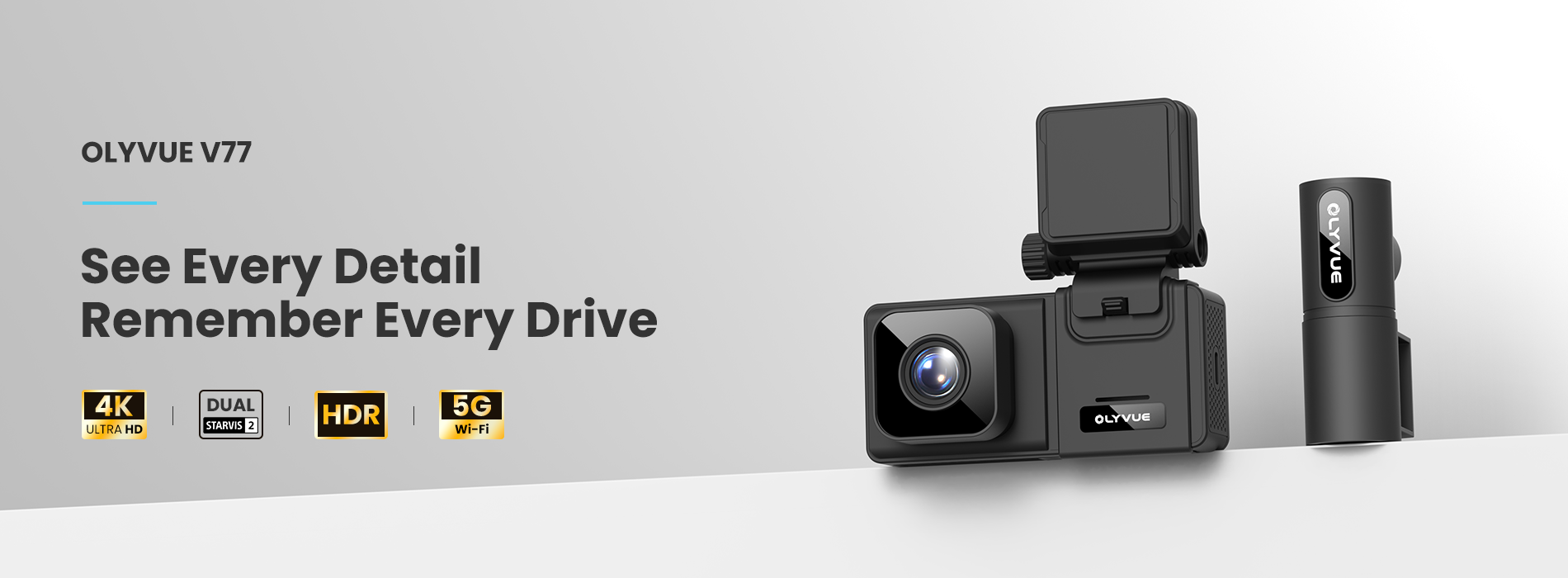 OLYVUE V77 4K front and rear HDR Dash Cam with Dual Sony STARVIS 2 Sensors Super Night Vision 5GHz Wi-Fi